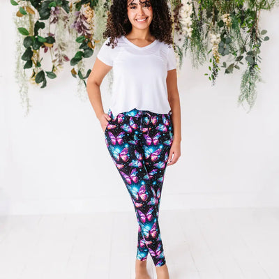 Match your little ones as they flutter into sweet dreams with these women’s lounge pants inspired by Mariposa the Fairy. Made from silky soft bamboo, they feature a delicate pattern of twinkling stars and shimmering wings in pastel shades, functional pockets, and a comfy elastic waistband. Create magical matching moments with your littles as they embark on enchanting journeys with sparkling fairies.