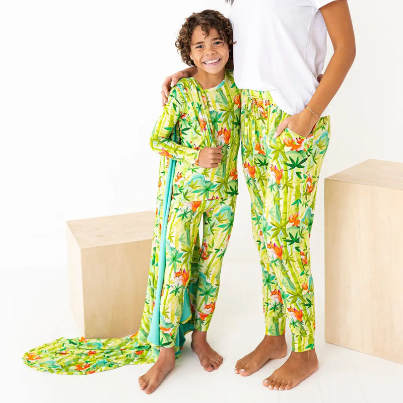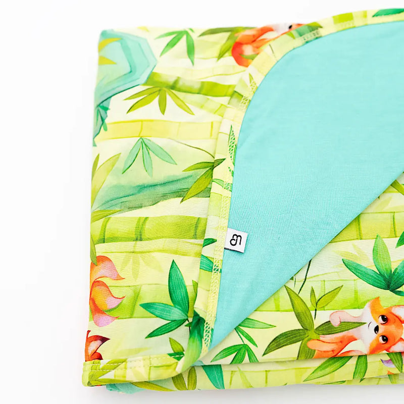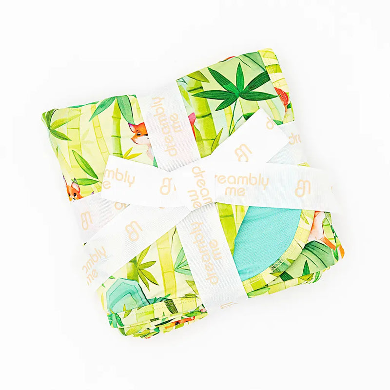 Dash into springtime dreams with this blanket inspired by Fox, featuring playful foxes weaving through a lush bamboo forest of fresh green leaves. It’s thoughtfully designed with a double-layered weave and smooth rounded edges. Perfect for toddlers and kids ready to explore, leap forward with curiosity, and chase new adventures into dreamland!